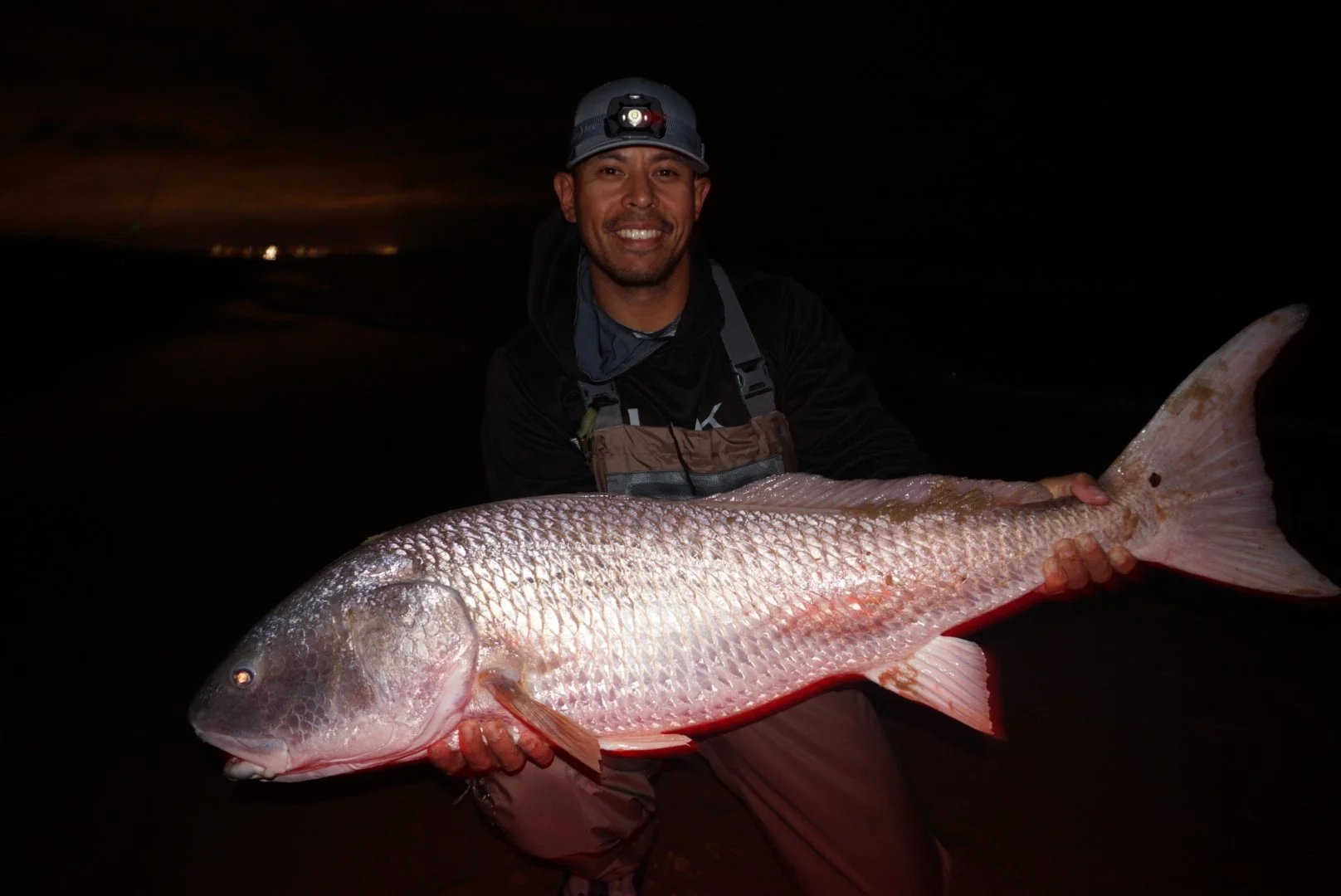 A large amount of red drum migrate to Virginias Chesapeake Bay in the spring to spawn and will holdover throughout the summer and then migrate back out in the fall. In general, red fish have a very broad range and you can find them as far north as Massachusetts all the way down to Texas. However, some of the biggest red drum are caught in Virginia and North Carolina waters, likely due to the vicinity of the Chesapeake Bay. As they migrate out of the bay in the fall, targeting them in Virginia Beach is a popular destination, as is Virginias Eastern Shore, but the Outer Banks (OBX) of North Carolina is probably the most famous area to target these migrating fish. NC also happens to hold the all-tackle world record at 94 lbs 2 oz, caught while surf fishing.